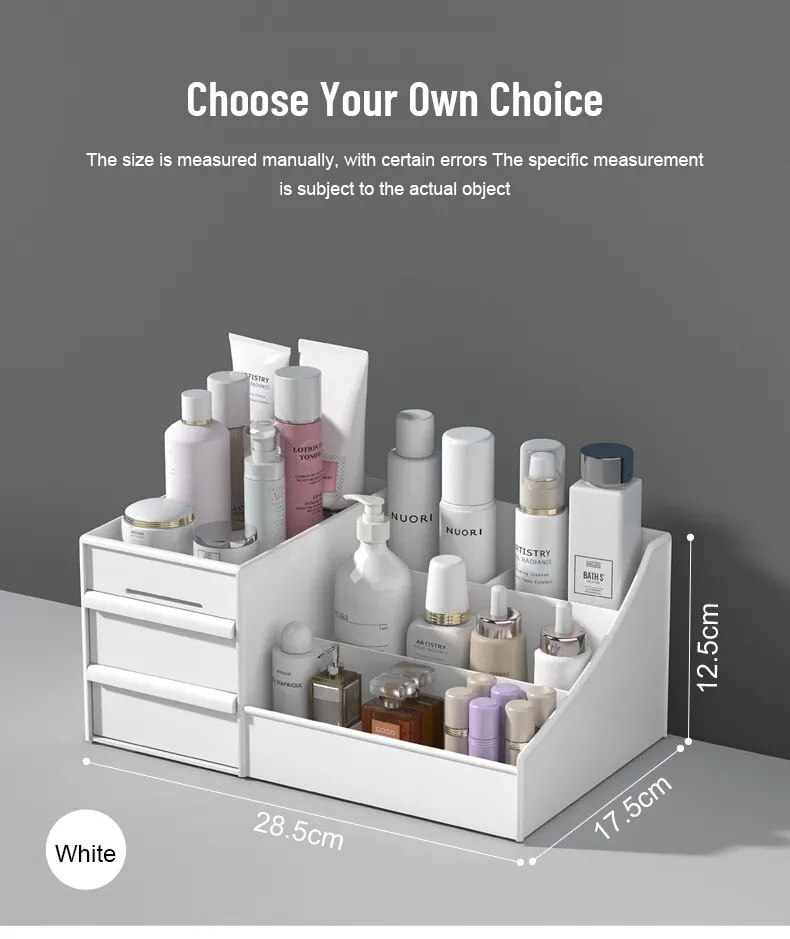 • Versatile Makeup Storage :This white drawer makeup storage box is perfect for organizing your cosmetics and skin care products. It's ideal for dormitory use or any small space.